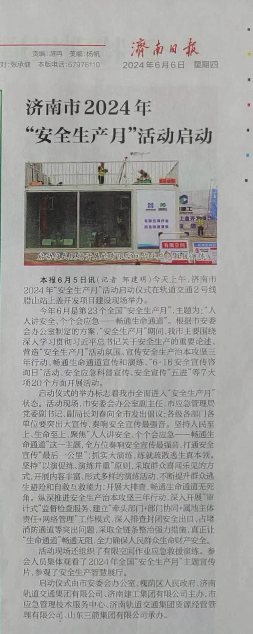 編者按:6月14日,《濟南日報》頭版刊登了《濟南建工集團以安全筑根基——向新向質推進項目深化》文章,對集團發(fā)展新質生產(chǎn)力,以項目